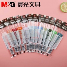 晨光 4253 中性笔芯 本味 24色浅蓝/豌豆绿/天空蓝/深绿/浅橙/深橙/金红/浅粉红/浅棕/棕/浅紫/紫/草绿/绿/橙/黄/深红/粉红/红/墨蓝/深蓝/天蓝/蓝/黑0.5mm 12支/盒