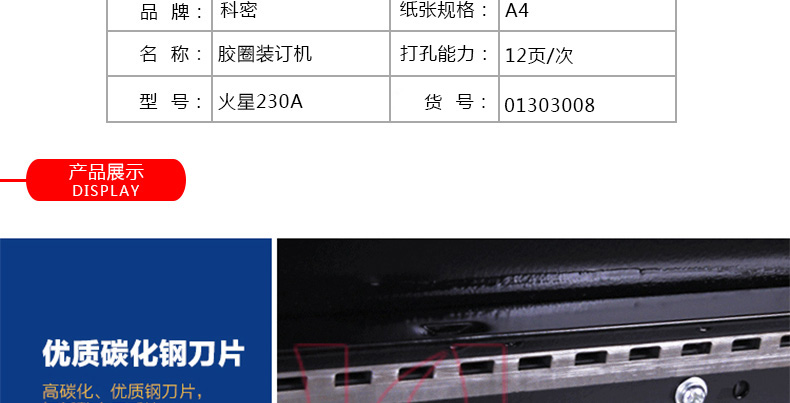 科密胶圈装订机火星230A A4 手动胶圈夹条打孔机