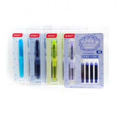 晨光直液式钢笔HAFP0664 卡装1支钢笔+4支墨囊 可擦晶蓝可擦纯蓝黑色可擦墨蓝 壳颜色随机 24卡盒