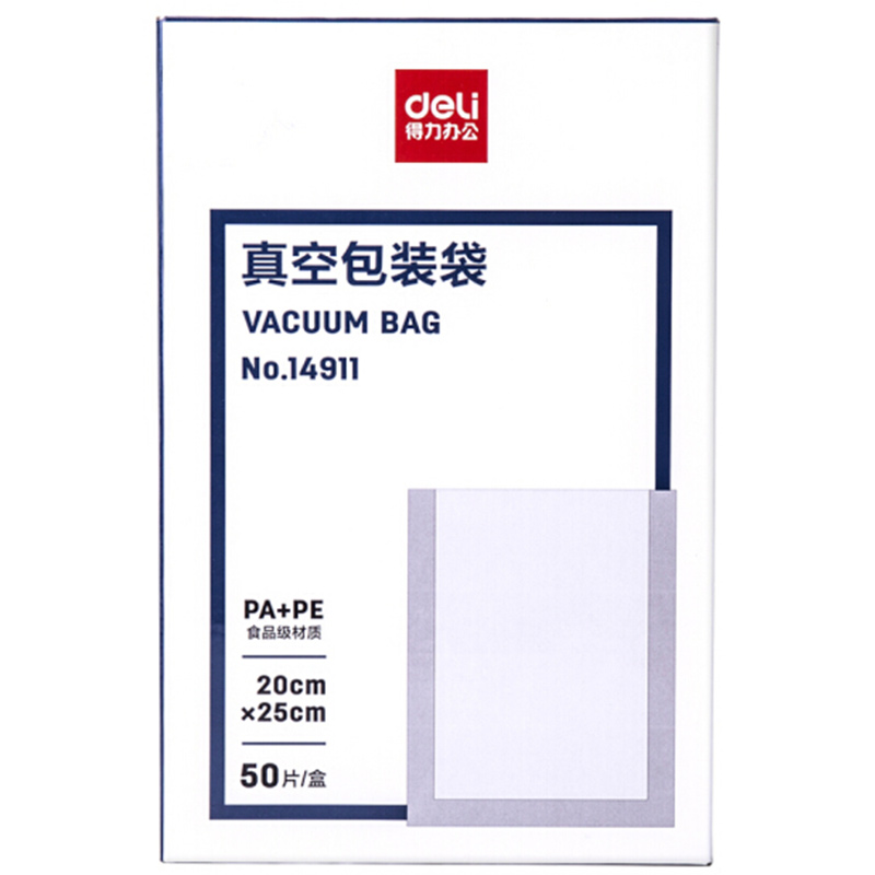 得力真空包装袋14911 20*25CM(本色)(50片/盒)