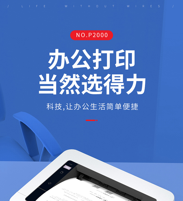 得力(deli)P2000 A4黑白激光打印机 25PPM高速打印
