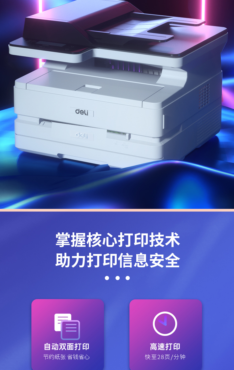 得力(deli)M2500AD A4黑白激光多功能一体机(打印 复印 扫描三合一/自动双面打印/28PPM)