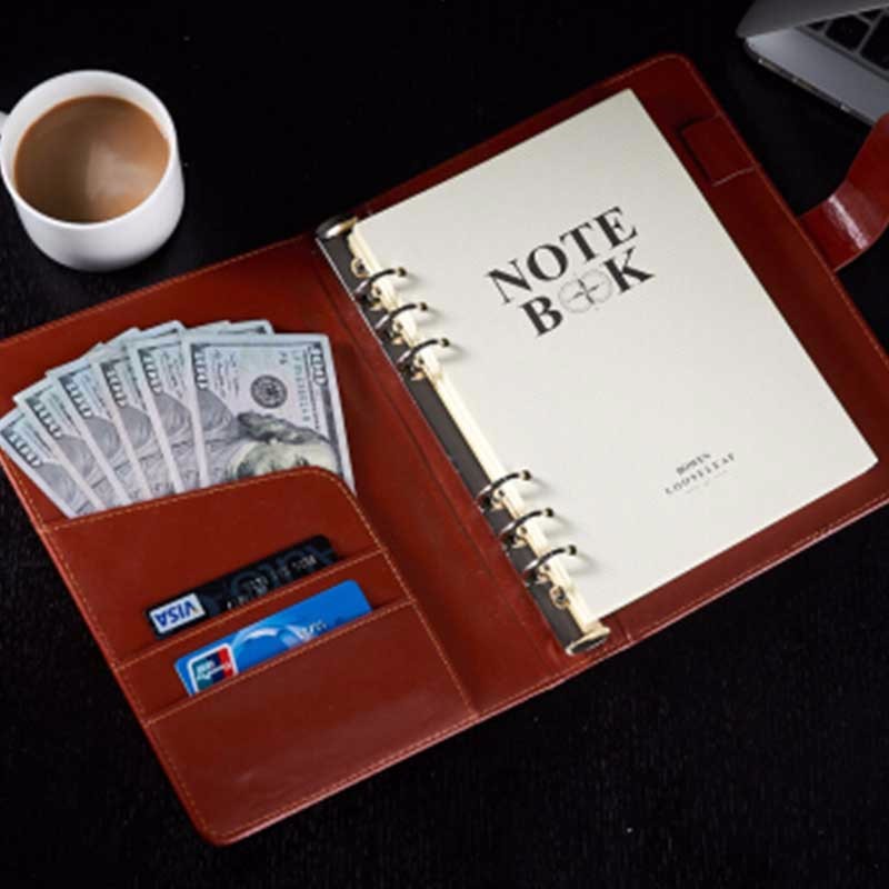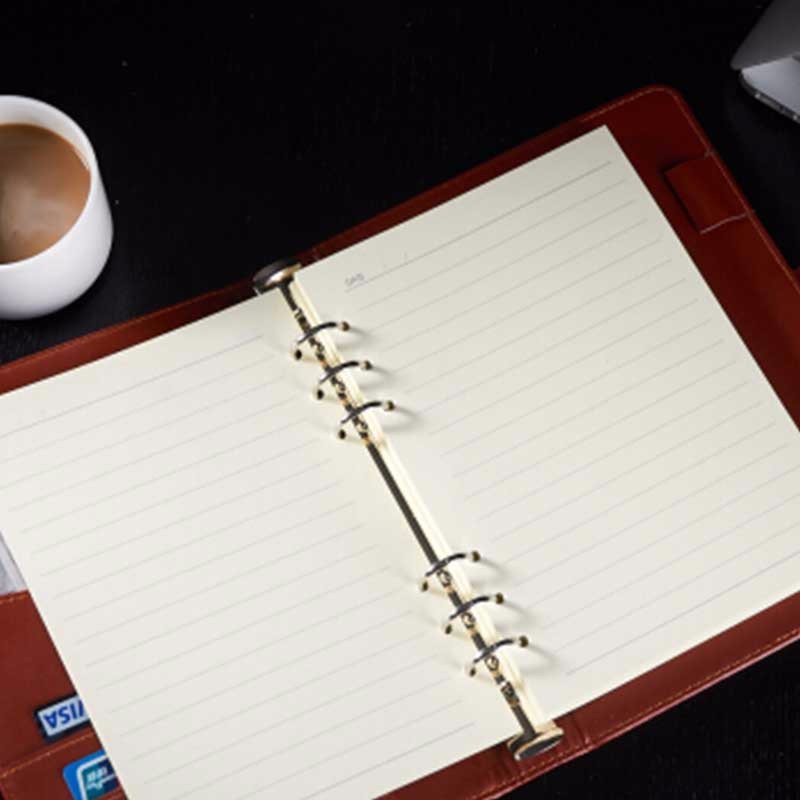 博文 7811 皮面活页带扣笔记本 A5-6孔100页 咖啡色 14本/盒